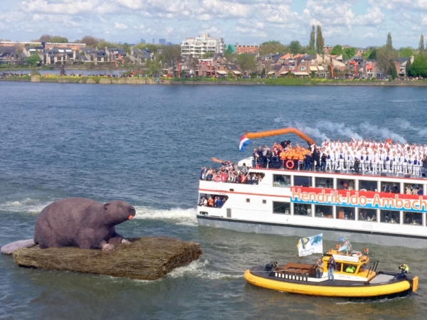 On King’s Day 2015, the Netherlands was introduced to a very special member of the animal kingdom: the Biesbosch Beaver. This gigantic inflatable sculpture was specially designed for the celebration of the national holiday, commissioned by the Parkschap Nationaal Park De Biesbosch and Staatsbosbeheer. Mothership developed the concept, designed the installation, and managed its production. The project was made possible through sponsorship by KIWA Nederland.
