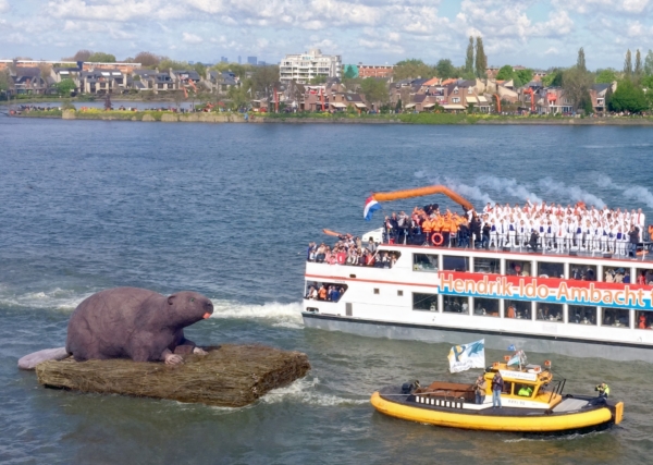 On King’s Day 2015, the Netherlands was introduced to a very special member of the animal kingdom: the Biesbosch Beaver. This gigantic inflatable sculpture was specially designed for the celebration of the national holiday, commissioned by the Parkschap Nationaal Park De Biesbosch and Staatsbosbeheer. Mothership developed the concept, designed the installation, and managed its production. The project was made possible through sponsorship by KIWA Nederland.