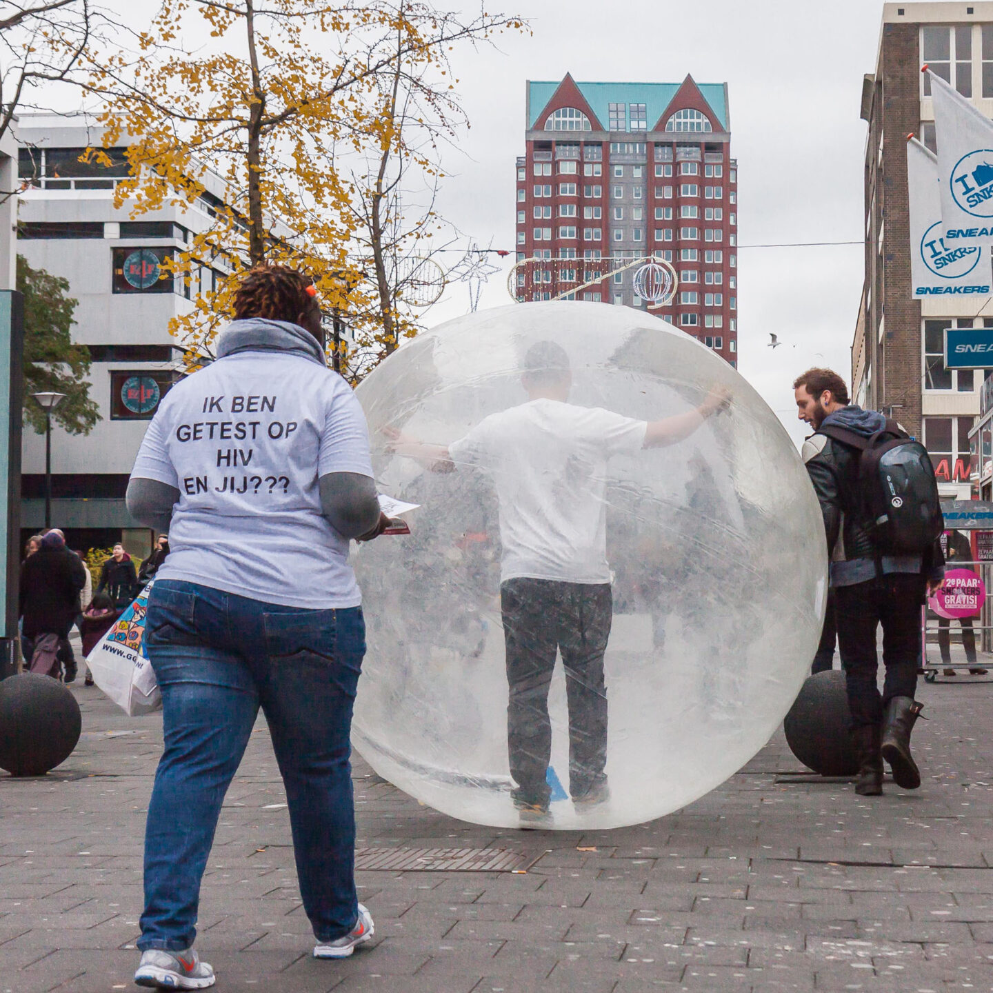 As part of World AIDS Day 2013, Emma van Beek, Stefanie Bos, and Lotje Chabot created the striking project Threesome. With this art installation, the three young artists explored themes of vulnerability, connection, and awareness surrounding HIV and AIDS.