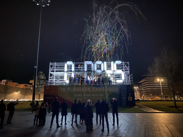 In het hart van Almere, op vier meter onder zeeniveau en midden op de Esplanade, bouwde Mothership een opvallende kunstinstallatie in de vorm van een Aftelklok. Deze klok luidde het begin in van de laatste 100 dagen voor de opening van de wereldtuinbouwtentoonstelling Floriade Expo 2022. Op 4 januari begon het aftellen naar 14 april, de dag waarop de poorten van het park voor het publiek werden geopend.