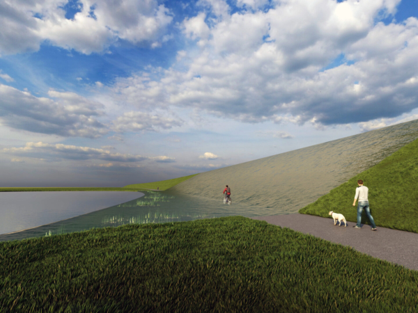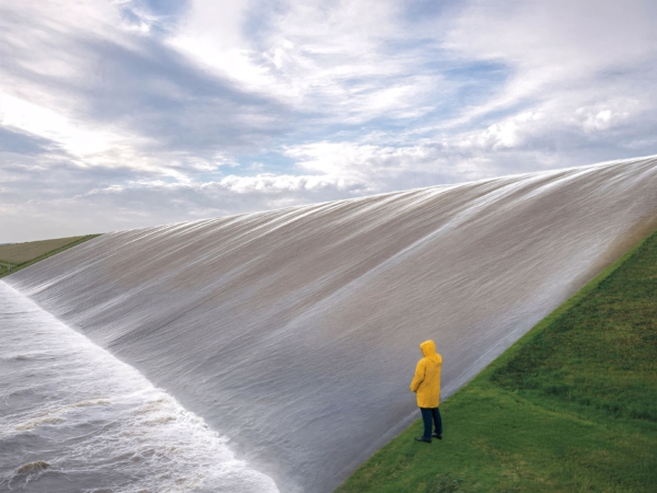 ‘After the flood’ refereert aan de historische Sint-Luciavloed van 1287 en verbeeldt de dreiging van een dijkdoorbraak — een reëel onderdeel van de Nederlandse geschiedenis en identiteit. Het kunstwerk bestaat uit een landschappelijke ingreep waarbij water over een dijk stroomt en eindigt in een kunstmatig wiel, dat oogt als een natuurlijk doorbraakgat. Dit water beweegt onregelmatig en roept zo de suggestie op van een naderende ramp, gevolgd door een verstilde, troostrijke oase rond het wiel. De bezoeker kan het werk ervaren via wandel- en fietspaden, met rustpunten langs de route.