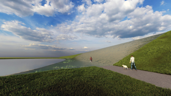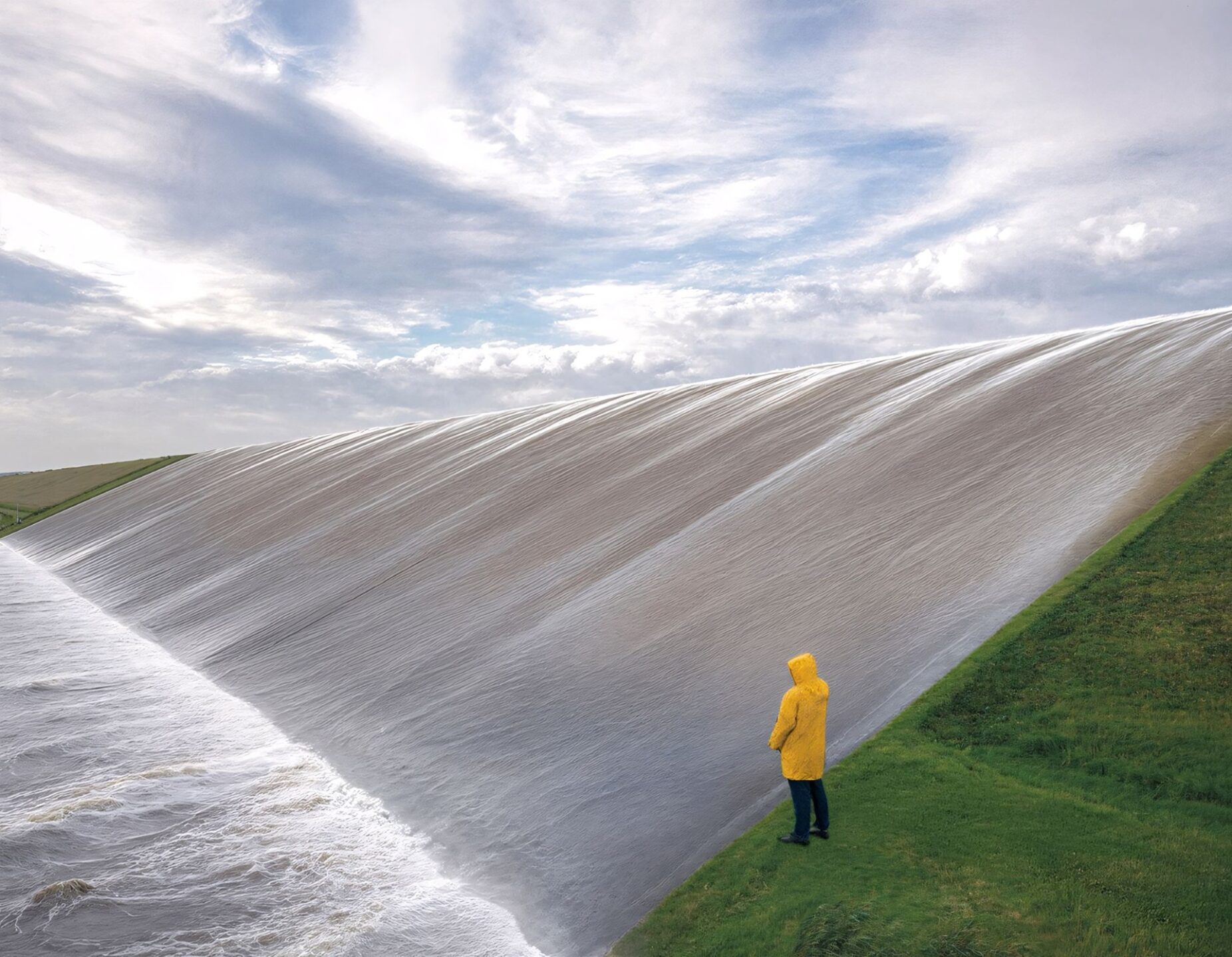 ‘After the flood’ refereert aan de historische Sint-Luciavloed van 1287 en verbeeldt de dreiging van een dijkdoorbraak — een reëel onderdeel van de Nederlandse geschiedenis en identiteit. Het kunstwerk bestaat uit een landschappelijke ingreep waarbij water over een dijk stroomt en eindigt in een kunstmatig wiel, dat oogt als een natuurlijk doorbraakgat. Dit water beweegt onregelmatig en roept zo de suggestie op van een naderende ramp, gevolgd door een verstilde, troostrijke oase rond het wiel. De bezoeker kan het werk ervaren via wandel- en fietspaden, met rustpunten langs de route.
