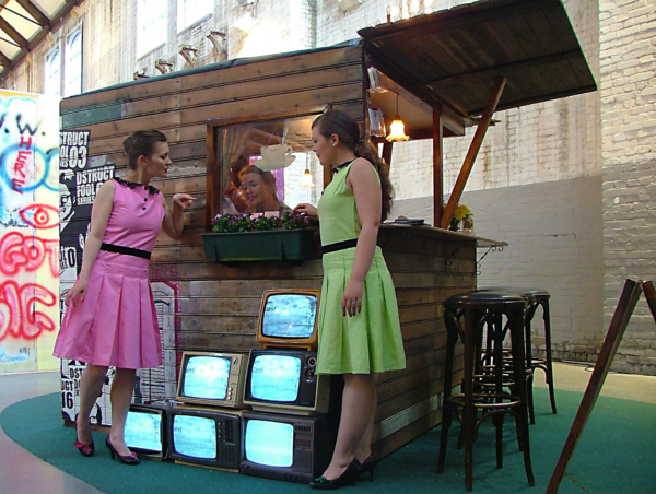 Bliss, bekend om hun subtiele performances die spelen met vrouwelijke archetypes en sociale conventies, zette met Altijd Gezellig een ironische sfeer neer waarin de grens tussen oprechte gastvrijheid en beklemmende opgewektheid vervaagde. DSTRUCT voegde daar digitale interactie aan toe in de vorm van projecties, geluiden en live-geregisseerde camera’s, waardoor het publiek tegelijk toeschouwer én deelnemer werd in een opgelegde vrolijkheid.