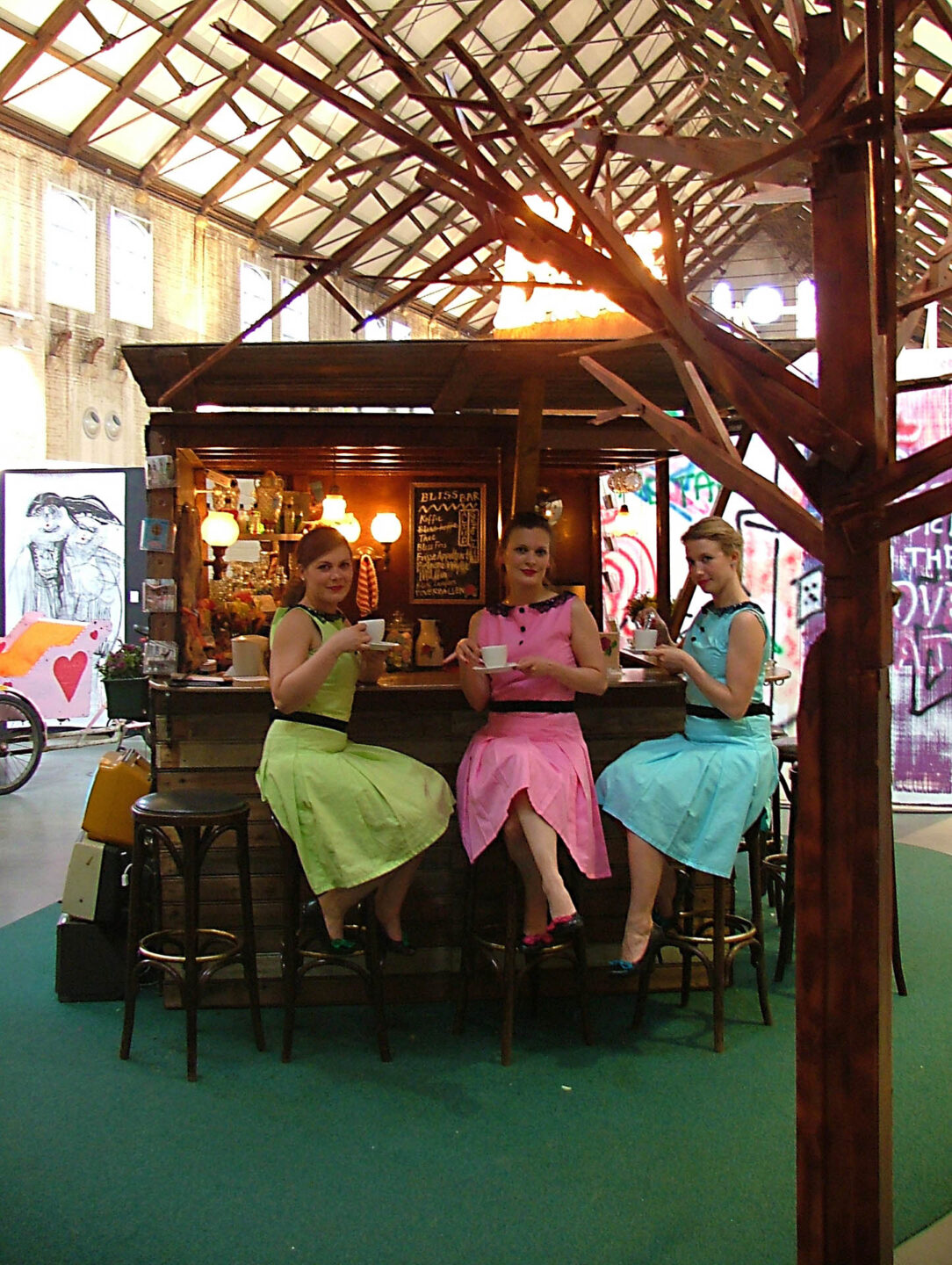 Bliss, bekend om hun subtiele performances die spelen met vrouwelijke archetypes en sociale conventies, zette met Altijd Gezellig een ironische sfeer neer waarin de grens tussen oprechte gastvrijheid en beklemmende opgewektheid vervaagde. DSTRUCT voegde daar digitale interactie aan toe in de vorm van projecties, geluiden en live-geregisseerde camera’s, waardoor het publiek tegelijk toeschouwer én deelnemer werd in een opgelegde vrolijkheid.