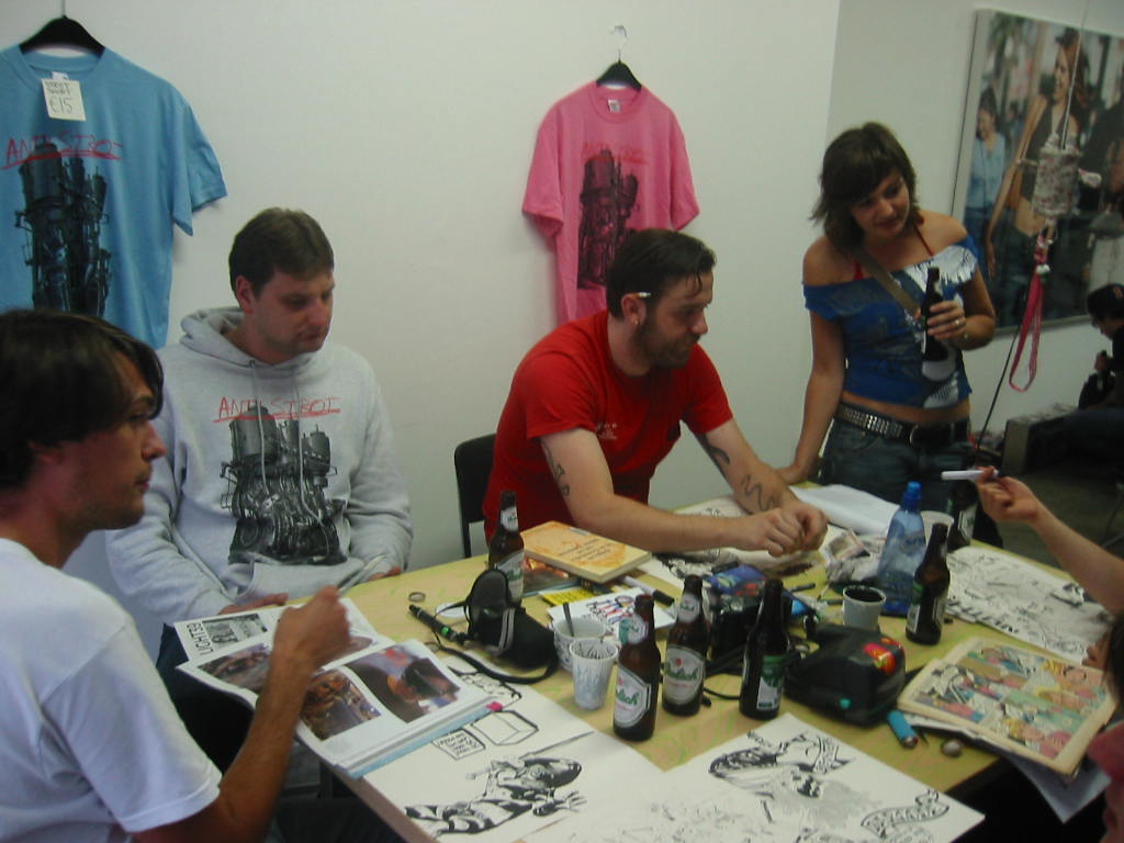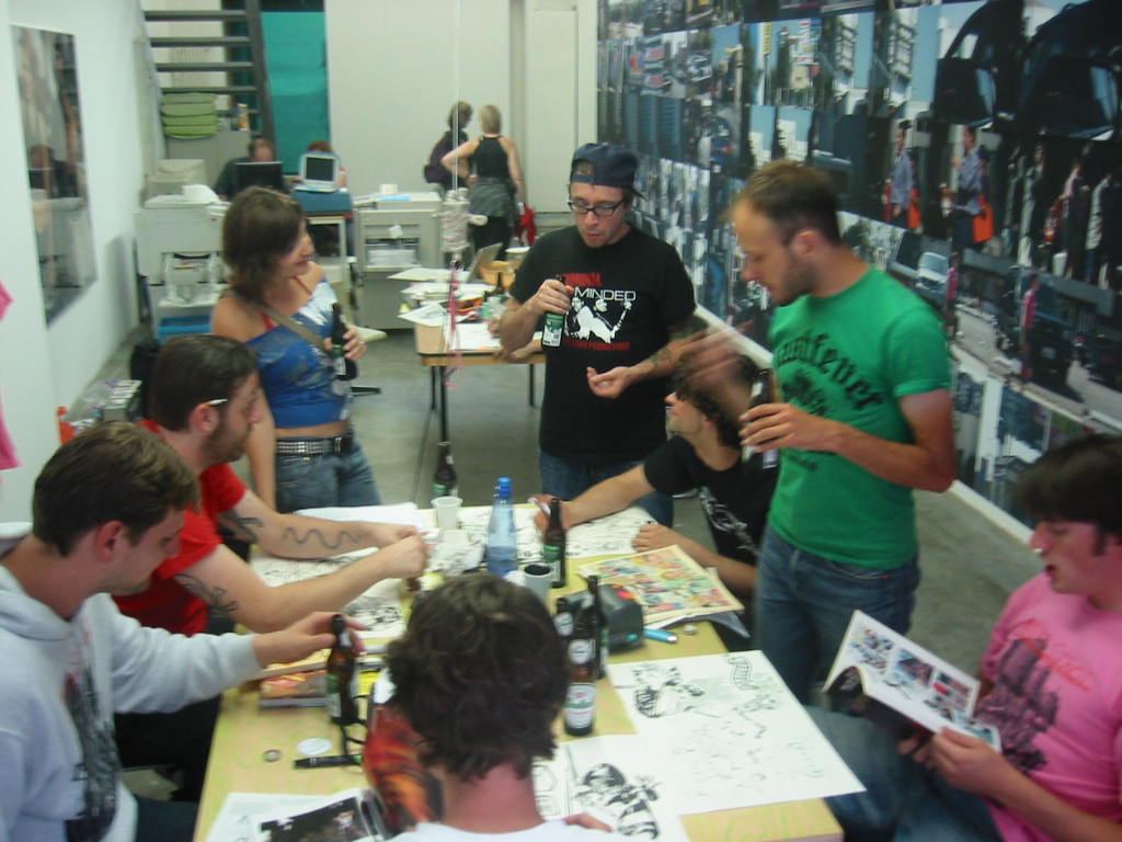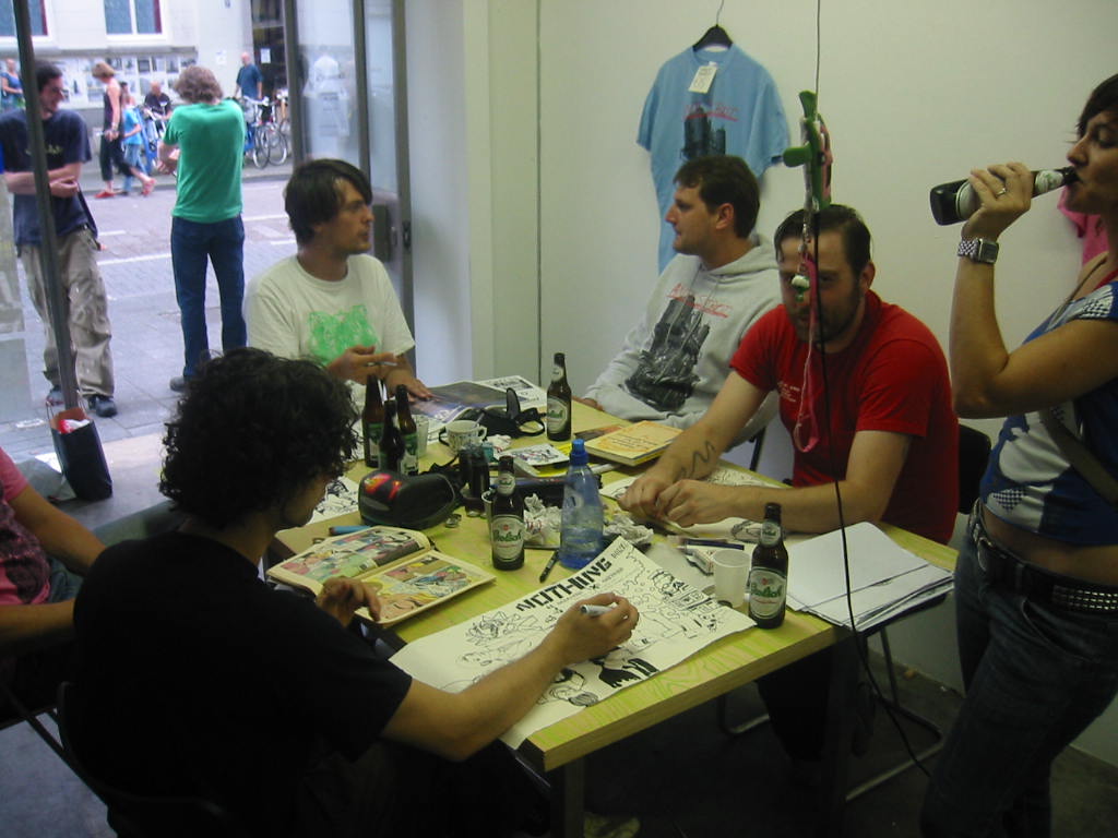 Tijdens het festival Wereld van de Witte de With in 2005 werkten de Antwerpse kunstenaarsgroep Rotkop en het Rotterdamse collectief Antistrot samen aan een uniek project: een gezamenlijk magazine waarin hun werelden op speelse en kritische wijze samenkwamen. Deze publicatie ontstond vanuit de behoefte om buiten de kaders van de traditionele expositievorm te treden en de samenwerking tussen de twee steden op een directe, creatieve manier vorm te geven. Het project paste perfect binnen het festivalthema van dat jaar: “Antwerpen, de spiegel van Rotterdam”, waarin kunstenaars uit beide steden elkaars werk, cultuur en stedelijke context onderzochten en bevroegen. De samenwerking tussen Rotkop en Antistrot werd gekenmerkt door rauwe energie, humor en een wederzijdse liefde voor grafische, anarchistische beeldtaal – een mix die resulteerde in een visueel overdonderende uitgave vol tekeningen, collages en manifesten.