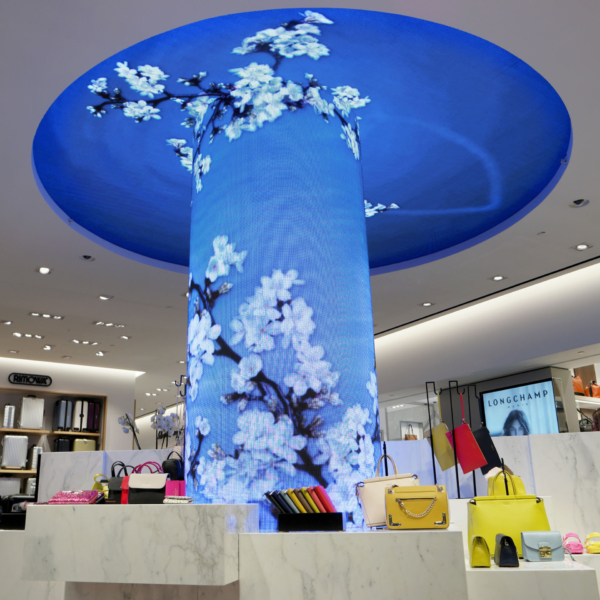 Mothership bedacht het concept, coördineerde het project en fungeerde als curator. Mothership transformeerde een betonnen pilaar – oorspronkelijk een storend element – tot het middelpunt van de ruimte. Met flexibele LED-panelen werd de pilaar een dynamisch canvas dat naadloos overgaat in een ronde lichtcirkel (Ø 4 meter) in het plafond.
