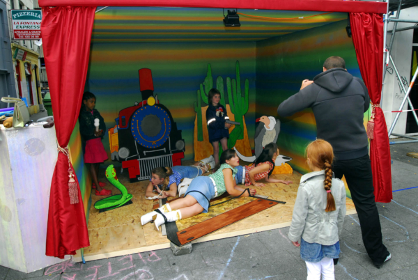 Met een flinke knipoog en veel roze verleidden de performers van BLISS het publiek om deel te nemen aan deze heroïsche fotosessies. Iedere setting was een speelse combinatie van kitsch, drama en humor, waarbij de bezoeker even mocht schitteren als redder in nood.