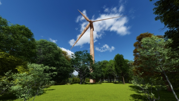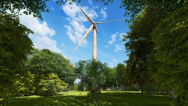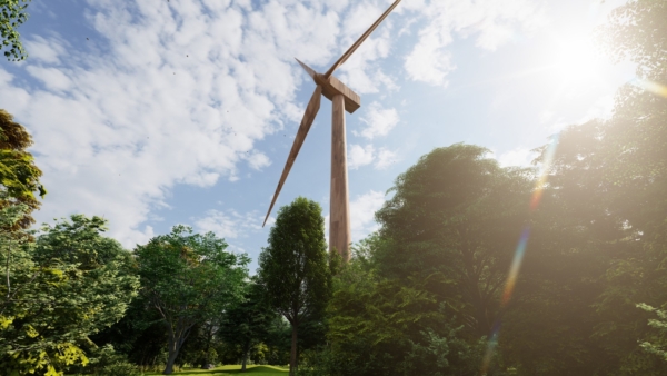 Het concept De Houten Windmolen voorziet moderne windturbines van een houtstructuur door middel van high-tech stickerfolie. Daarmee lijken de imposante turbines — tot wel 150 meter hoog — van hout gemaakt. Deze optische illusie verwijst naar het iconische silhouet van de traditionele molen, maar combineert dit met de kracht en efficiëntie van hedendaagse windenergie.