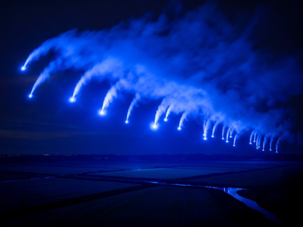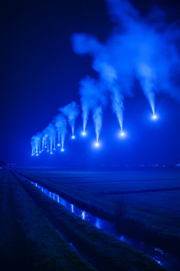 De inspiratie voor het concept komt uit Grave, waar in het verleden kanonnen werden gebruikt om omliggende dorpen te alarmeren bij hoogwater. Mothership vertaalt deze functie naar een hedendaags ritueel: in een zorgvuldig gecoördineerde estafette worden lichtkogels afgestoken met tussenpozen van circa 200 meter. Zo ontstaat een bewegende ketting van blauwe vlammen die niet alleen de volledige linie markeert, maar de Zuiderwaterlinie ook letterlijk zichtbaar maakt in het landschap — als tijdelijk, indrukwekkend en poëtisch baken van verbondenheid en herinnering.