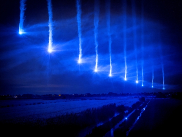 De Vuurlijn is een krachtig en visueel concept dat de historische betekenis van de langste, oudste en meest gebruikte waterlinie van Nederland op spectaculaire wijze tot leven brengt. Over een lengte van 150 kilometer — van Grave tot Bergen op Zoom — vormen blauwe lichtkogels een magisch lint van vuur en geluid, als een moderne echo van de historische kanonschoten die vroeger waarschuwden voor overstroming of oorlog.