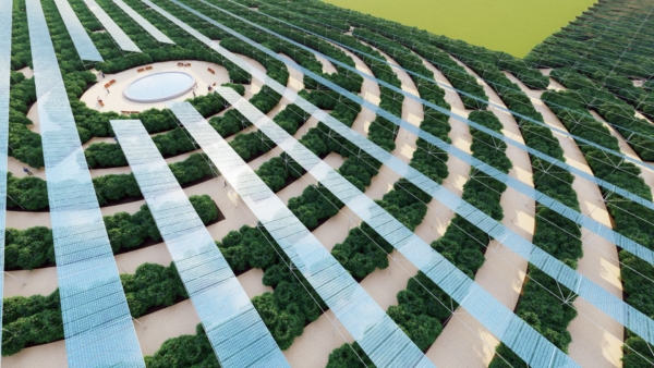 In het kader van een uniek burgerinitiatief rond het Windpark Nijmegen-Betuwe ontwikkelde Mothership een bijzonder voorstel voor de naastgelegen zonneweide: een zonnepark dat niet alleen energie opwekt, maar ook een publieke groene beleving biedt. Het resultaat is een innovatief ontwerp waarin techniek en natuur samensmelten tot een verrassend geheel: een doolhof van bessen onder een dak van zonnepanelen.