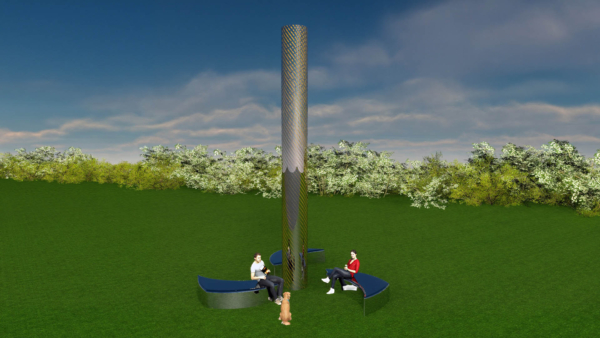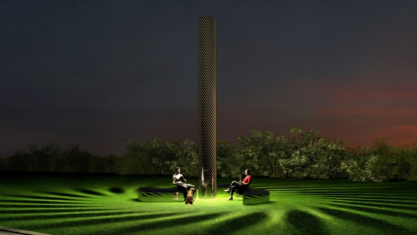 De zuil wordt voorzien van energie-opwekkende folie, waarmee innovatie letterlijk zichtbaar wordt. Door gebruik van het optische moiré-effect ontstaan steeds veranderende patronen op het oppervlak. ’s Avonds zorgt binnenverlichting voor een betoverend lijnenspel, wat de beleving versterkt. De opgewekte zonne-energie wordt benut om de zuil langzaam te laten draaien, wat het kunstwerk een dynamisch karakter geeft.