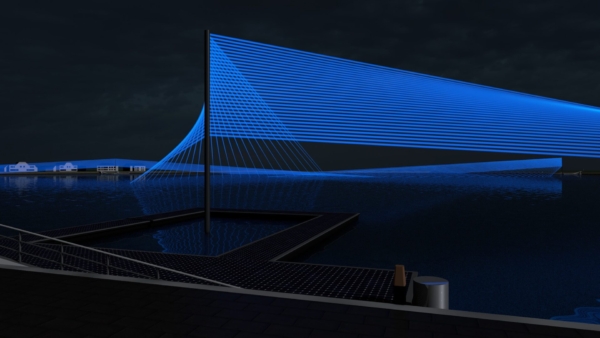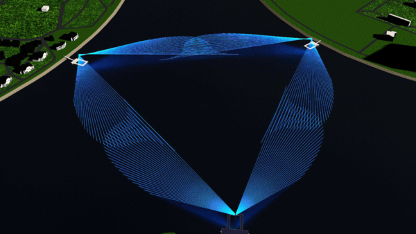 Waar eerder het plan was om drie spectaculaire waterstralen van honderden meters hoog te realiseren, is na technische en veiligheidsbezwaren gekozen voor een vernieuwde benadering. In plaats van water vormen nu krachtige lichtstralen de verbinding tussen drie verblijfspunten aan de kades van de drie steden. Deze lichtfonteinen vormen samen een gelijkzijdige driehoek over het water, die niet alleen visueel indrukwekkend is, maar ook de onderlinge relatie tussen de steden symboliseert.