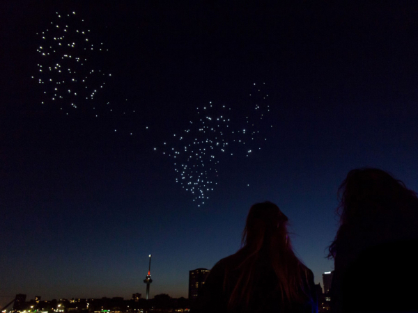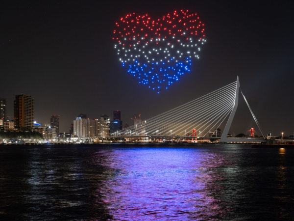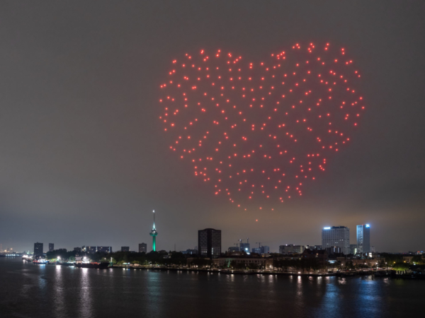 Mothership, initiatiefnemer van dit project, werkte in recordtijd samen met Studio DRIFT aan een indrukwekkende versie van Franchise Freedom: een luchtshow waarin 300 drones een choreografie uitvoerden boven de Maas in Rotterdam. De zwerm drones symboliseerde individuele vrijheid binnen een collectieve beweging. De vlucht eindigde in een adembenemend beeld: een kloppend, rood hart dat boven de stad verscheen – een eerbetoon aan de zorg en aan de menselijke veerkracht.