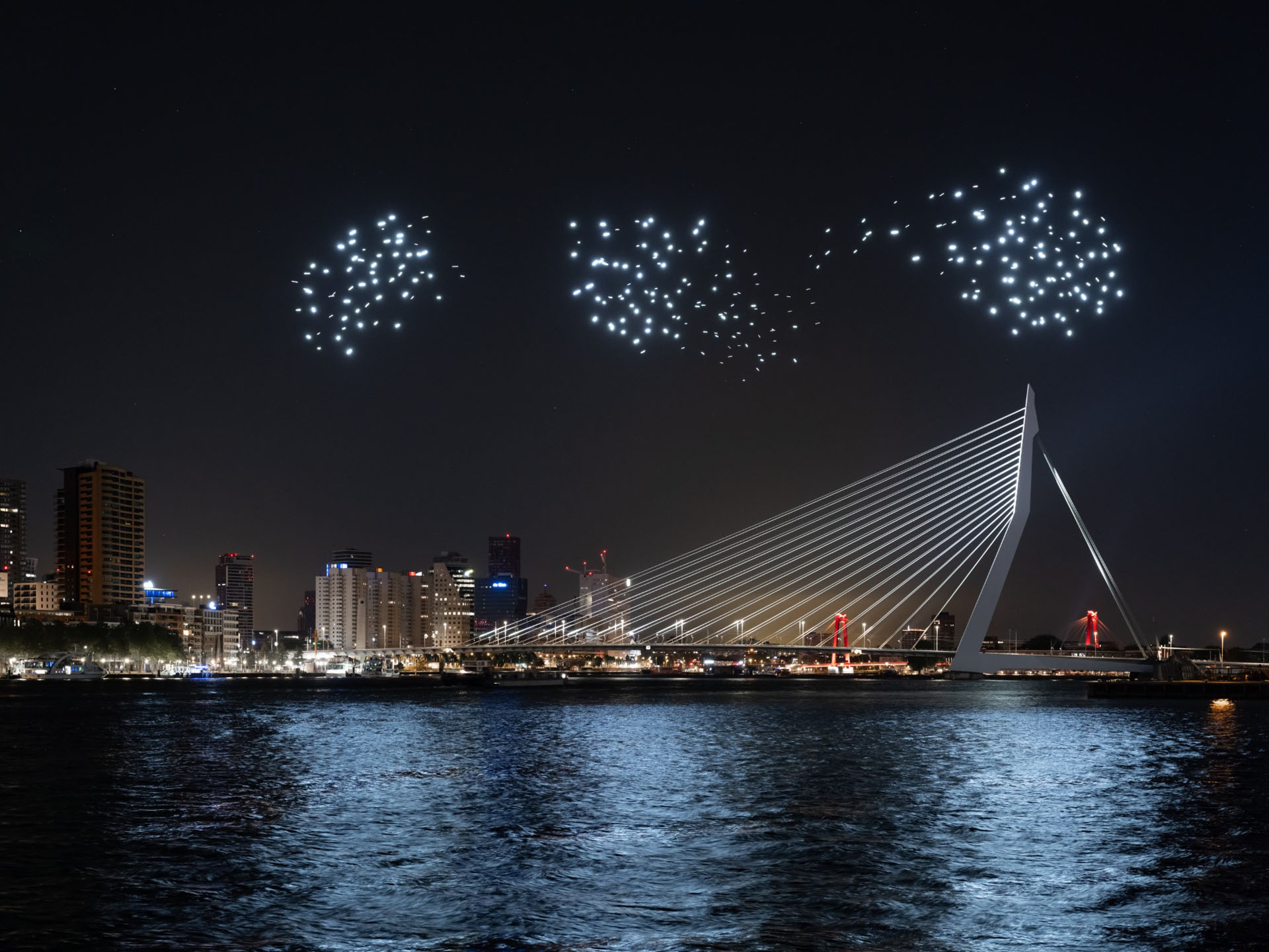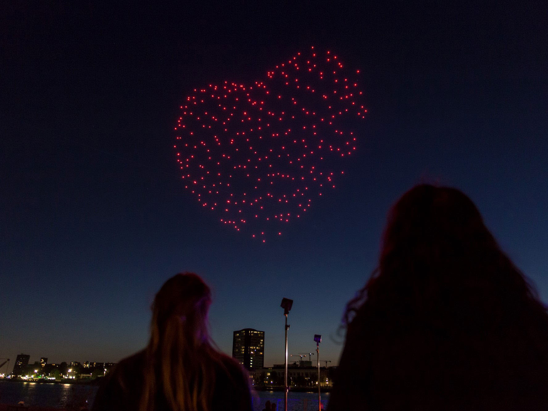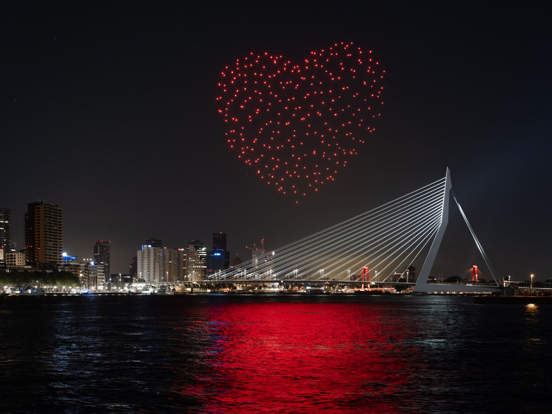 Mothership, initiatiefnemer van dit project, werkte in recordtijd samen met Studio DRIFT aan een indrukwekkende versie van Franchise Freedom: een luchtshow waarin 300 drones een choreografie uitvoerden boven de Maas in Rotterdam. De zwerm drones symboliseerde individuele vrijheid binnen een collectieve beweging. De vlucht eindigde in een adembenemend beeld: een kloppend, rood hart dat boven de stad verscheen – een eerbetoon aan de zorg en aan de menselijke veerkracht.