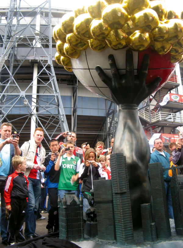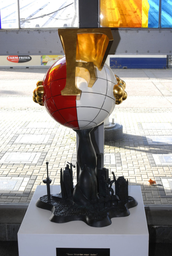 Voor het 100-jarig bestaan van voetbalclub Feyenoord maakte kunstenaar Hans van Bentem in opdracht van de supportersvereniging een imposant kunstwerk getiteld “Geen Woorden Maar Daden!”. Het beeld is geïnspireerd op een oude prent waarin een gespierde arm het stadion uit de Maas tilt. Dit krachtige beeld werd door Van Bentem vertaald naar een bronzen sculptuur waarin een arm een wereldbol draagt, uitgevoerd in de kenmerkende rood-witte clubkleuren. Het symboliseert de wereldwijde steun van het legioen aan hun club: de wereld van Feyenoord.