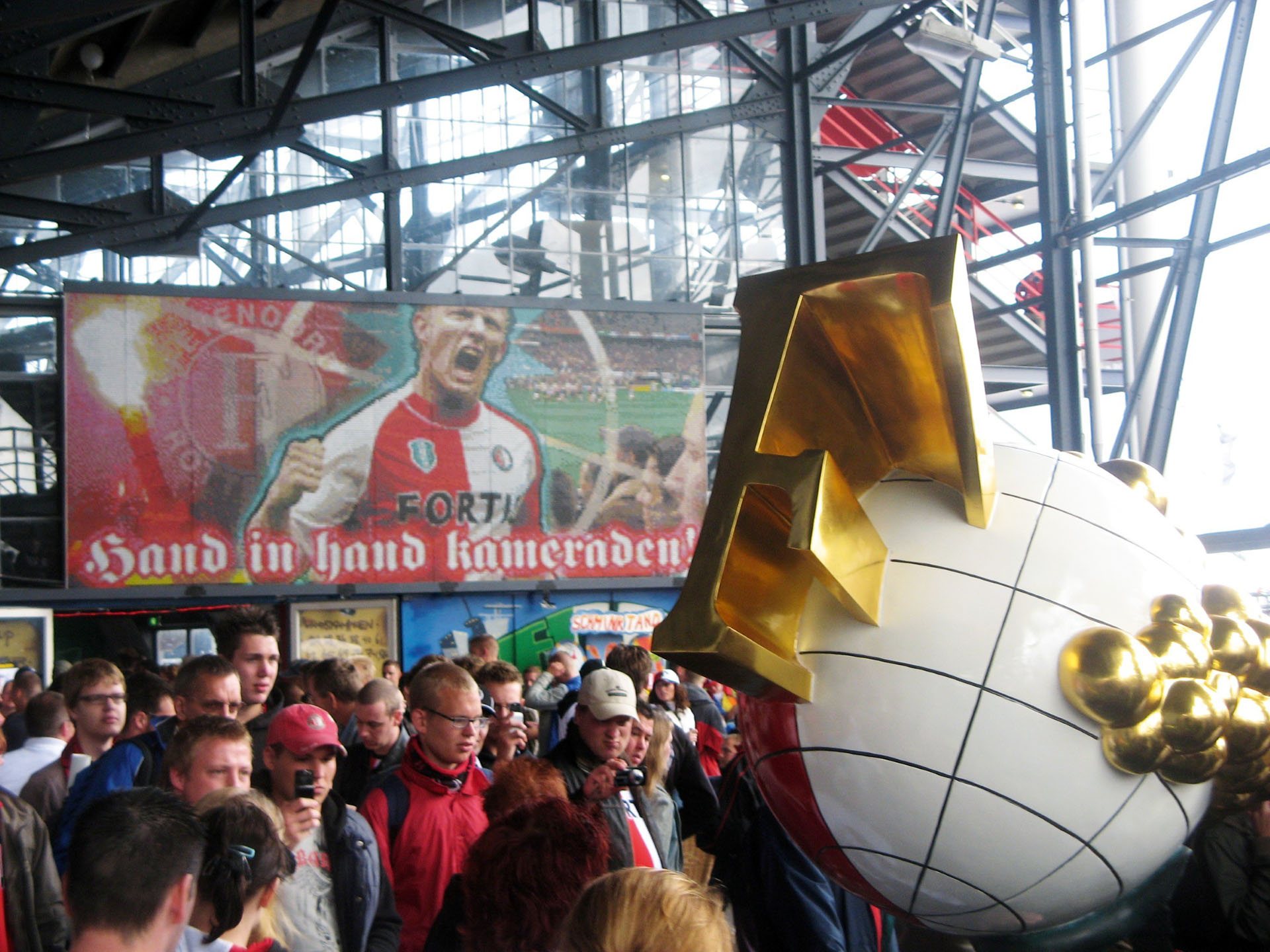 Voor het 100-jarig bestaan van voetbalclub Feyenoord maakte kunstenaar Hans van Bentem in opdracht van de supportersvereniging een imposant kunstwerk getiteld “Geen Woorden Maar Daden!”. Het beeld is geïnspireerd op een oude prent waarin een gespierde arm het stadion uit de Maas tilt. Dit krachtige beeld werd door Van Bentem vertaald naar een bronzen sculptuur waarin een arm een wereldbol draagt, uitgevoerd in de kenmerkende rood-witte clubkleuren. Het symboliseert de wereldwijde steun van het legioen aan hun club: de wereld van Feyenoord.