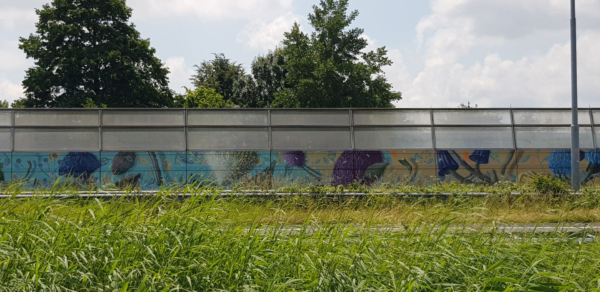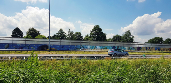 Op 25 april 2019 werd langs de A15 bij Sliedrecht iets bijzonders zichtbaar: een meterslang kunstwerk van Collin van der Sluijs dat het geluidsscherm veranderde in een kleurrijk canvas vol natuur, symbolen en herkenning. Wat normaal slechts een grijze muur is voor voorbijrazend verkeer, werd ineens een verhaal over Sliedrecht – een visuele pauze langs de snelweg.