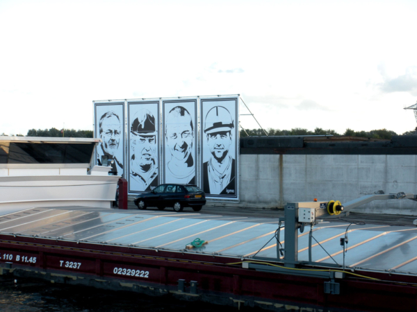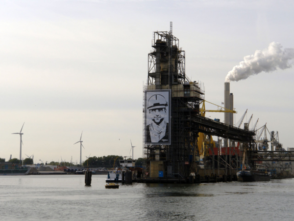 Kunstenaar DSTRUCT (Thijs Kelder) droeg bij met een krachtig beeldend werk: een serie enorme banners met portretten van havenarbeiders. Deze levensgrote gezichten, geplaatst op strategische plekken in het havengebied, confronteerden bezoekers met de menselijke kant van de industrie. De rauwe, karaktervolle koppen gaven de vaak anonieme haven een persoonlijk gezicht en vormden een eerbetoon aan de arbeiders die het gebied draaiende houden.