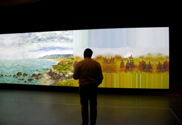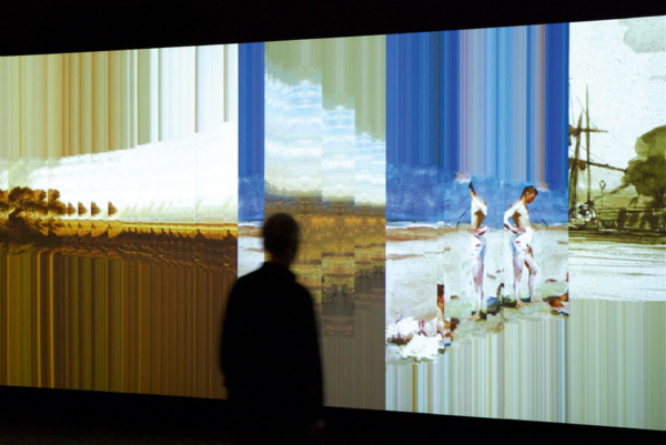 Met behulp van speciaal ontwikkelde software werden de horizonnen in de schilderijen naar hetzelfde niveau gebracht en vervolgens geprojecteerd op een grote wand. Wat deze installatie bijzonder maakt, is de interactie met de bezoeker: door bewegingen in de ruimte wordt de projectie geactiveerd. Terwijl de toeschouwer zich voortbeweegt, splitst het beeld zich in boven- en onderhelften die zich onafhankelijk van elkaar hercombineren tot steeds nieuwe landschappen. Zo ontstaat een eindeloze reeks aan nieuwe ‘horizons’, waarin het lichaam van de kijker een directe relatie aangaat met het beeld.