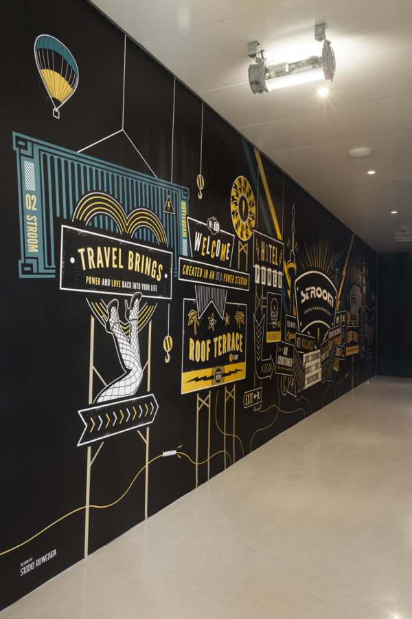 De platen in de lichtbakken zijn voorzien van grafische illustraties die de gasten op een creatieve manier de weg wijzen naar onder andere de wc, brasserie, lift, kamers en het dakterras. Dit werk past naadloos binnen de vernieuwde visuele identiteit van STROOM, waarin ook het logo en de website een opfrisbeurt kregen.