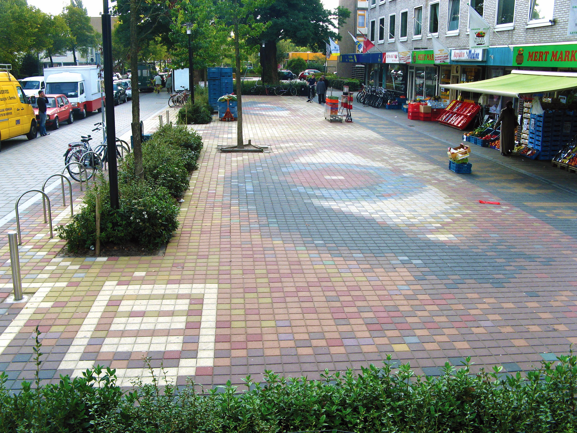 Bijzonder aan dit project is het gebruik van alledaags materiaal: stoeptegels, die normaal gesproken onopvallend in de stedelijke ruimte verdwijnen, worden hier verheven tot drager van een kunstwerk dat je letterlijk onder de voeten hebt. Door kunst op deze manier in de openbare ruimte te brengen, wordt de grens tussen dagelijks leven en kunstbeleving op een speelse manier vervaagd.