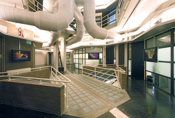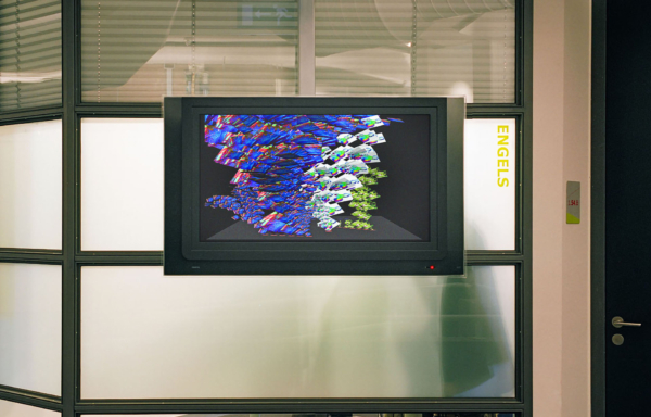 Geert Mul combineert in dit werk zijn fascinatie voor technologie, data en visuele poëzie. “Indicator” functioneert als een levende barometer van de organisatie en maakt het onzichtbare zichtbaar op een verrassend organische manier.