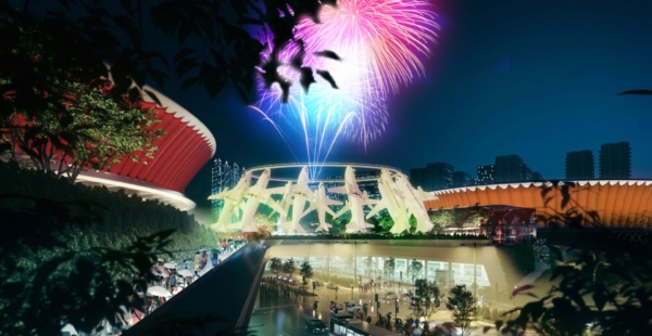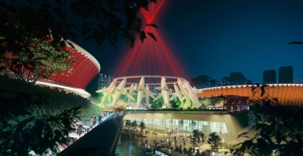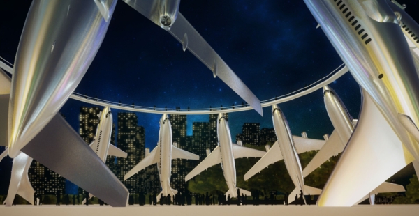 Om deze overgang tastbaar en gedenkwaardig te maken, stelt Mothership een visueel en fysiek indrukwekkende installatie voor: een kring van afgedankte vliegtuigen, opgesteld op hun staart met de neuzen naar elkaar gericht, verbonden door een platform. Overdag dient dit bouwwerk als uitkijkpunt over het sportpark, maar ’s avonds vormt het het decor van een unieke, multizintuiglijke avondshow die verleden, heden en toekomst van Kai Tak samenbrengt.