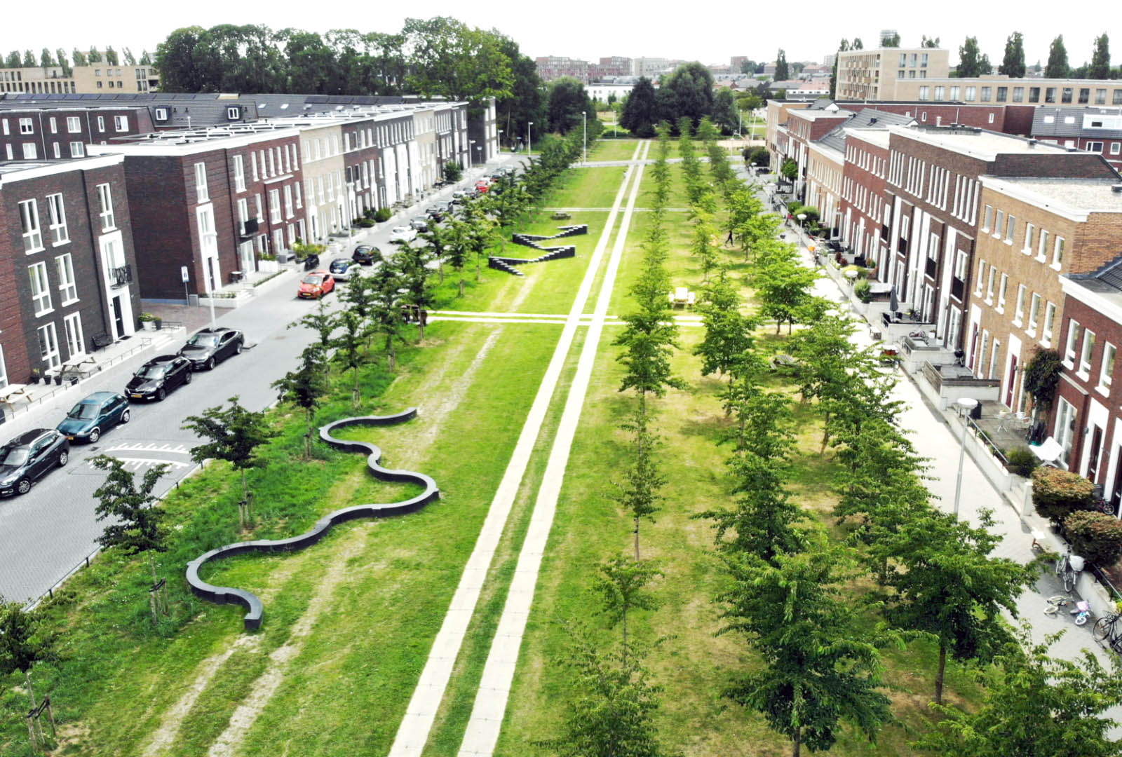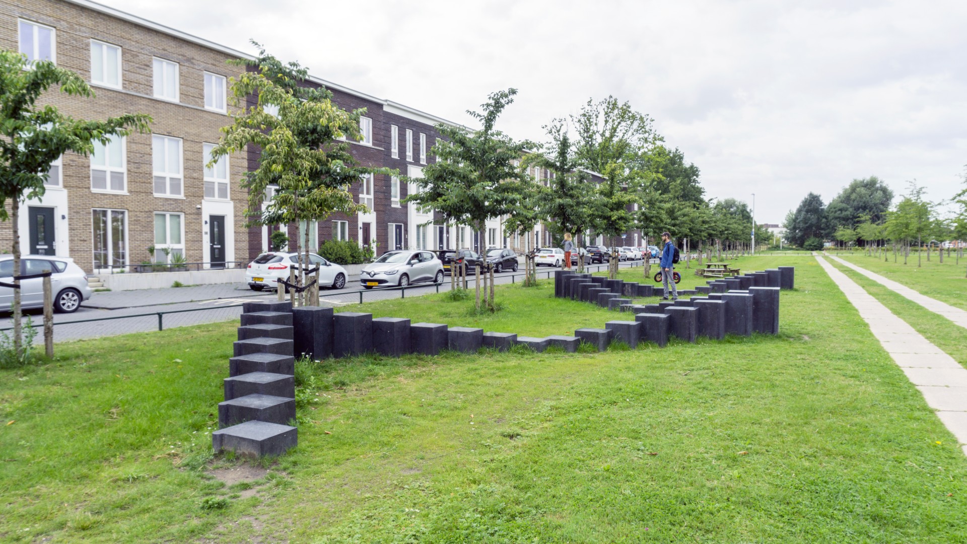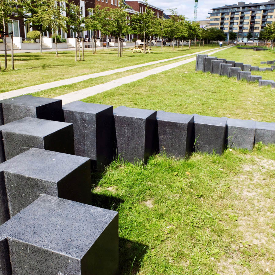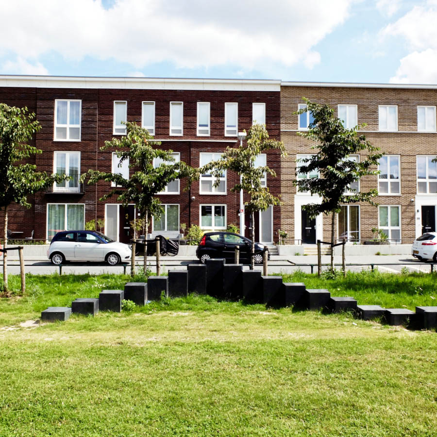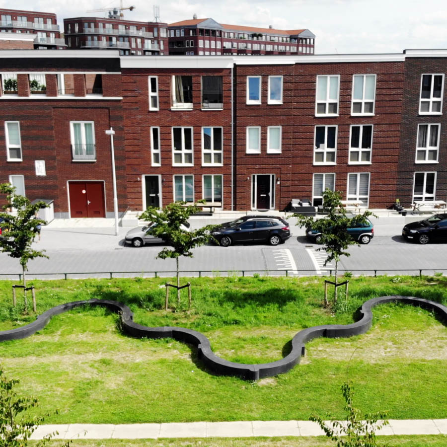 Het kunstwerk “Kantelen” van Maze de Boer speelt met de fantasie rondom de kantelen van het verdwenen Kasteel Grouwaart en de schaduwen die de huizen op het gras werpen. Mothership was verantwoordelijk voor de uitvoering en de coördinatie van het project.