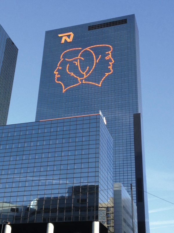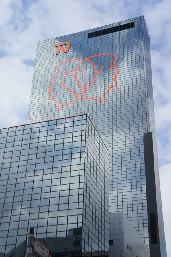 Rotterdamse ondernemers, de gemeente, Nationale Nederlanden en Mothership sloegen de handen ineen om dit unieke gebaar mogelijk te maken. Mothership bracht speciaal voor deze gelegenheid de kunstenaars Gijs van Bon en Thijs Kelder (studio Ruwedata) bij elkaar om samen het concept uit te voeren. Thijs ontwierp een lijntekening in fluoriserend oranje die als basis diende voor Gijs’ laseranimatie. Deze animatie werd in de avonduren zichtbaar, waarbij Koningin Beatrix symbolisch plaatsmaakt voor haar zoon.