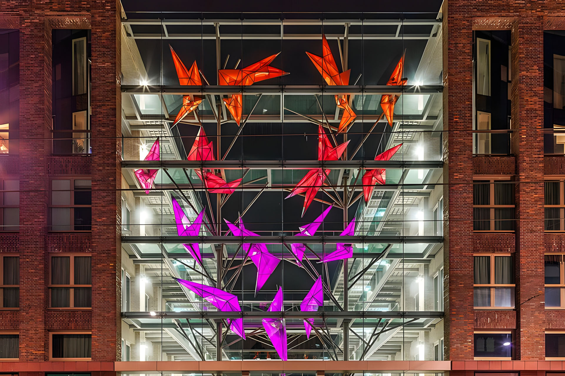Met dit werk brengt Van Bentem niet alleen een visuele ode aan de natuur in een stedelijke context, maar transformeert hij ook de architecturale ruimte tot een betoverend landschap waarin licht en reflectie de hoofdrol spelen. Kristal Growth is een perfect voorbeeld van hoe kunst, technologie en architectuur samenkomen om een inspirerende ervaring te creëren voor bewoners en bezoekers.