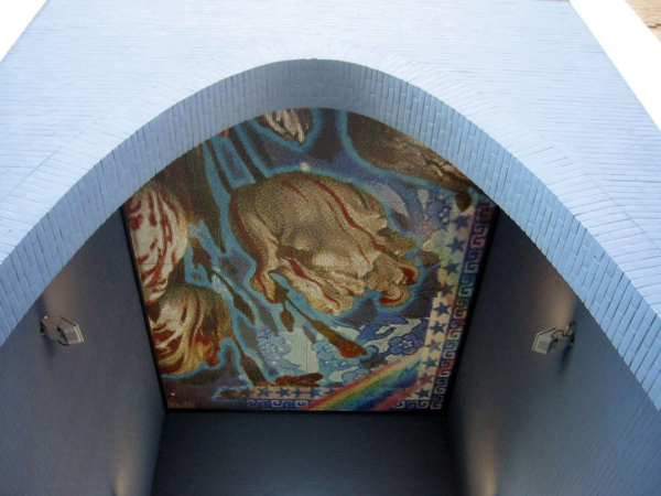 Voor het woningbouwproject Le Medi in de Rotterdamse wijk Delfshaven ontwierp Arno Coenen twee monumentale mozaïeken die de plafonds van de toegangspoorten tot het complex sieren. De architectuur van Le Medi is geïnspireerd op steden rond de Middellandse Zee en heeft een uitgesproken, kleurrijke uitstraling. Die sfeer wordt versterkt door Coenens mozaïeken, waarin hij traditionele Hollandse bloemstillevens combineert met patronen uit oosterse tapijten. Dit zorgt voor een visueel rijke en symbolische vertaling van de culturele diversiteit van de wijk.