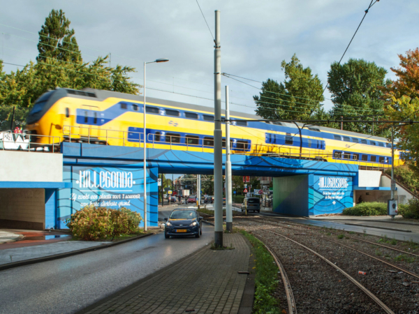 Het Muizengaatje, de spoorwegonderdoorgang aan de Bergweg-Straatweg in Rotterdam, werd door de deelgemeentes Noord en Hillegersberg-Schiebroek aangewezen voor een kunstzinnige transformatie. Threesome (Marjon van der Velden, Gino Catshoek en Kim Visser) kwam met het winnende ontwerp, waarin zij twee lokale iconen verbeeldden: voetballegende Coen Moulijn uit Noord en Hillegonda, de mythische grondlegger van Hillegersberg.