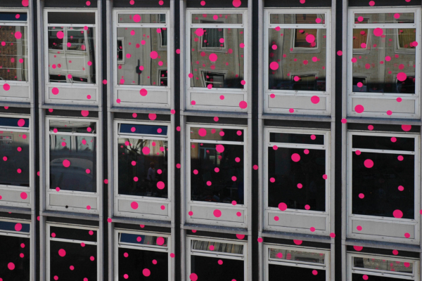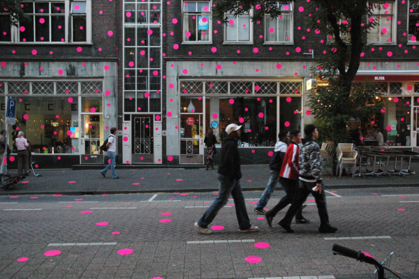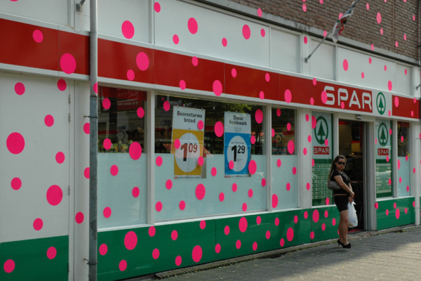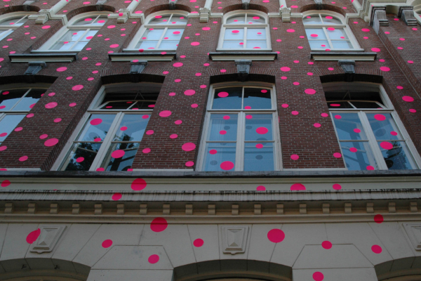 Met deze actie bracht VollaersZwart een onverwachte eenheid aan in de drukke en diverse straat, door ogenschijnlijk willekeurige elementen te verbinden met één simpel, grafisch motief. De stad kreeg een nieuw ritme en de alledaagse chaos werd getransformeerd tot een visuele compositie.