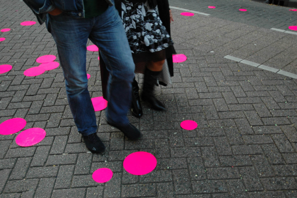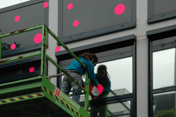 Tijdens het festival Wereld van de Witte de With in 2006 presenteerde Studio VollaersZwart het project LET’S STICK TOGETHER – een grootschalige city dressing in de vorm van een architectonische kunstinstallatie. Centraal stond een plaag van 50.000 ronde, fluorescerend roze stickers die zich als een visueel virus verspreidden over de Witte de Withstraat. Gebouwen, straatmeubilair, objecten en zelfs voorbijgangers werden ‘besmet’ en opgenomen in een collectieve, tijdelijke metamorfose.