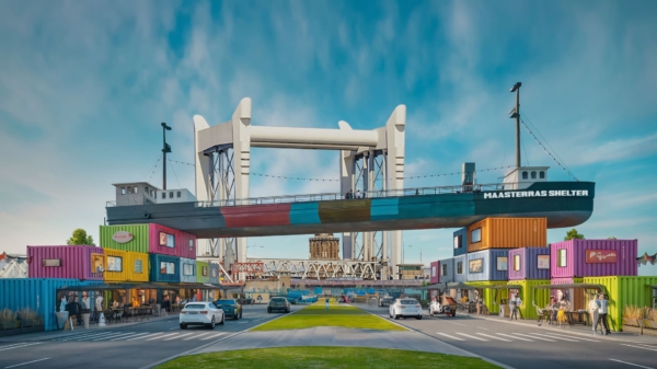 Maasterras Shelter is ontworpen als een veilige haven in een toekomst waarin klimaatverandering de dagelijkse realiteit is. Het concept speelt zich af in het jaar 2084, maar wordt nú gebouwd. Hier komt alles samen: drijvende terrassen, experimentele horeca, ruimte voor kunst, dialoog en samenwerkingen. Een plek die mensen niet alleen beschutting biedt, maar ook nieuwe perspectieven.