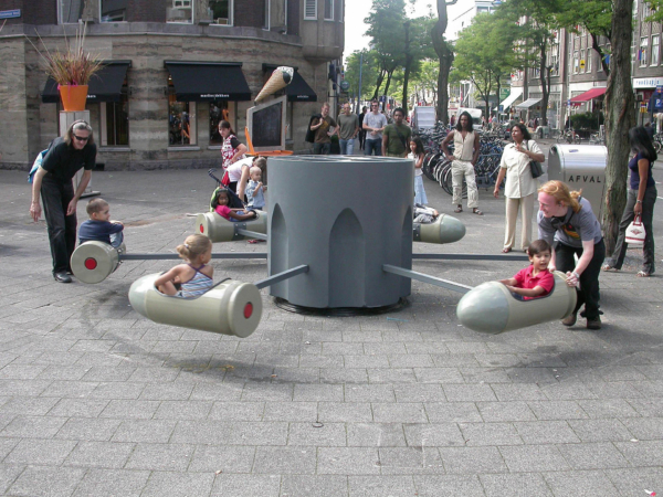 Tijdens het jaarlijkse kunstfestival Wereld van de Witte de With in 2005 presenteerde Michiel Reessink zijn werk Merry-go-Round. Op de hoek van de Witte de Withstraat en de Schiedamse Vest plaatste hij een opmerkelijke sculptuur: een draaimolen, opgebouwd uit een uitvergrote, gerecyclede cilinder van een ‘Magnum .44’-revolver. Het iconische kindersymbool van de draaimolen werd hiermee getransformeerd tot een beladen object dat balanceerde tussen onschuld en dreiging. Door het speelse te combineren met een element dat verwijst naar geweld, riep Merry-go-Round vragen op over de normalisering van agressie, de draaikolk van mediabeelden en de herhaling van maatschappelijke thema’s.