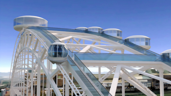 Het oorspronkelijke idee, ontstaan vanuit kunstenaar/architect John Körmeling en verder ontwikkeld door Mothership, voorziet in een aantal futuristische hotelcapsules die aan de brugboog bevestigd worden. Deze capsules worden via een liftende gondel bereikt en bieden unieke verblijven met panoramisch uitzicht over de rivier, het Drechtstedengebied en de molens van Kinderdijk. Op het hoogste punt van de brug zou een restaurant of uitzichtplatform kunnen verrijzen — een plek waar historie en toekomst samenkomen in een absurdistisch en esthetisch gebaar.