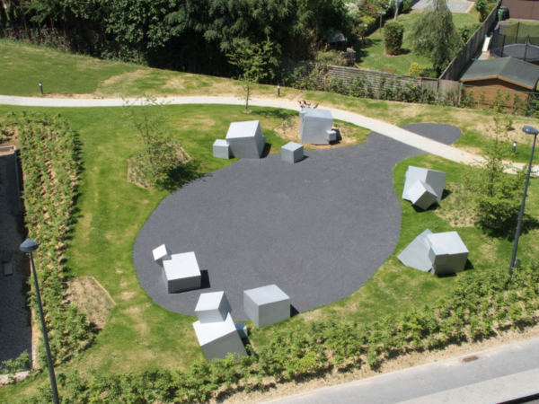 Met Oase creëerde kunstenaar Gabriel Lester een totaalkunstwerk voor het Woonzorgcentrum Demerhof in Bilzen, België. Het project bestaat uit een zorgvuldig ontworpen groen plantsoen, gecombineerd met sculpturale zit- en klimelementen die doen denken aan het mineraal pyriet.
