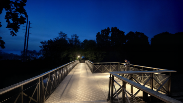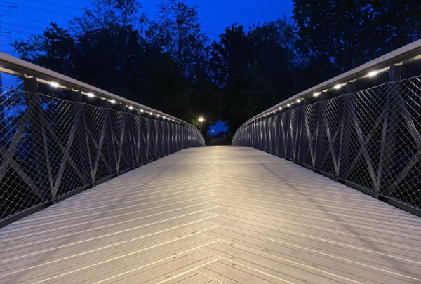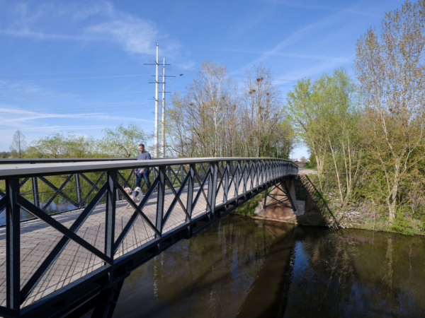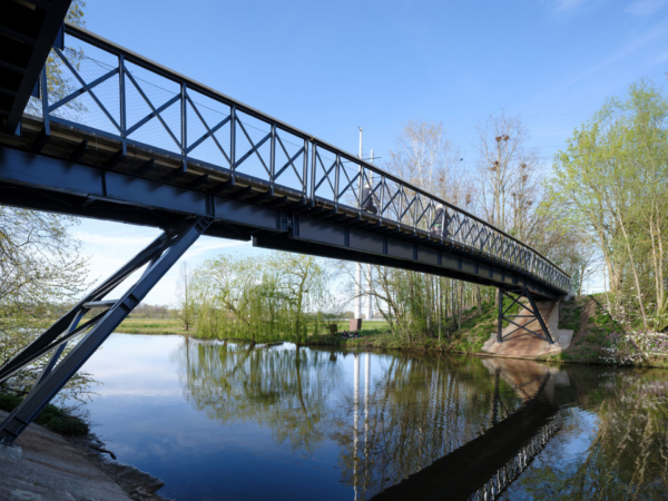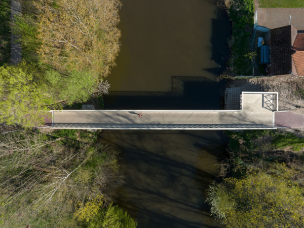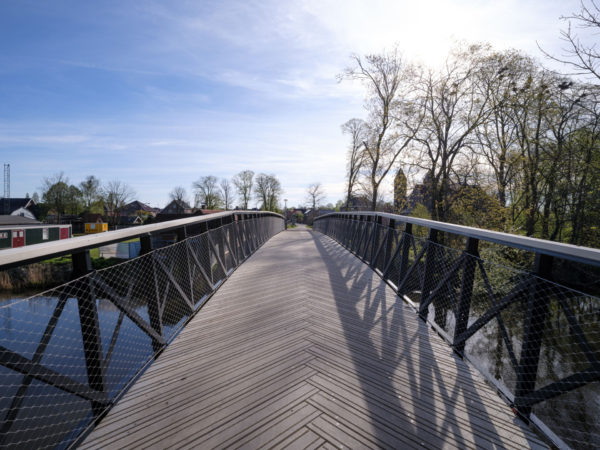 De brug werd ontworpen als eerbetoon aan de regio: geen houten brug, maar een constructie van staal – een verwijzing naar het ijzerrijke verleden van Ulft. Oude materialen kregen een tweede leven: staal van de vorige brug, ijzer van een gesloopte fabriek en metaal van een voormalige hoogspanningsmast werden opnieuw verwerkt. Zelfs het loopdek, gemaakt van duurzaam Accoya-hout, draagt bij aan het circulaire verhaal – inclusief herplanting voor toekomstige generaties.