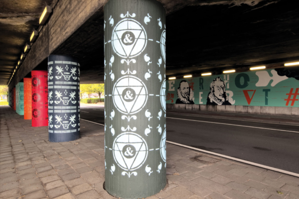 Geïnspireerd door het gelijknamige museum, verwerkten de kunstenaars historische portretten, negentiende-eeuwse afbeeldingen, typografische patronen en sjablonen in een imposante graffiti-installatie. Het resultaat is een levendig en gelaagd werk van 2 hellingen van elk 50 meter lang en 2,5 meter hoog, plus 13 beschilderde kolommen.