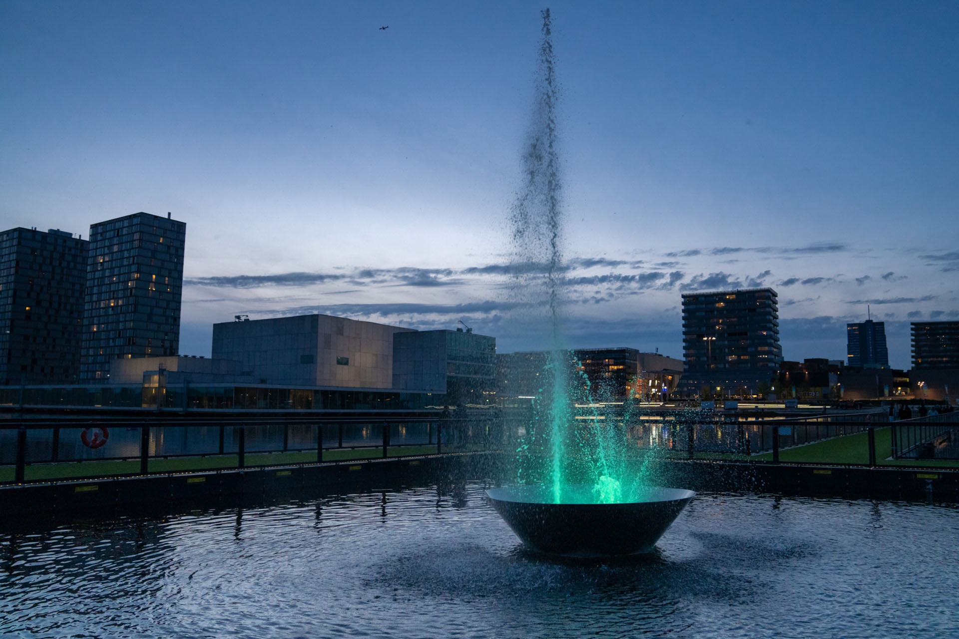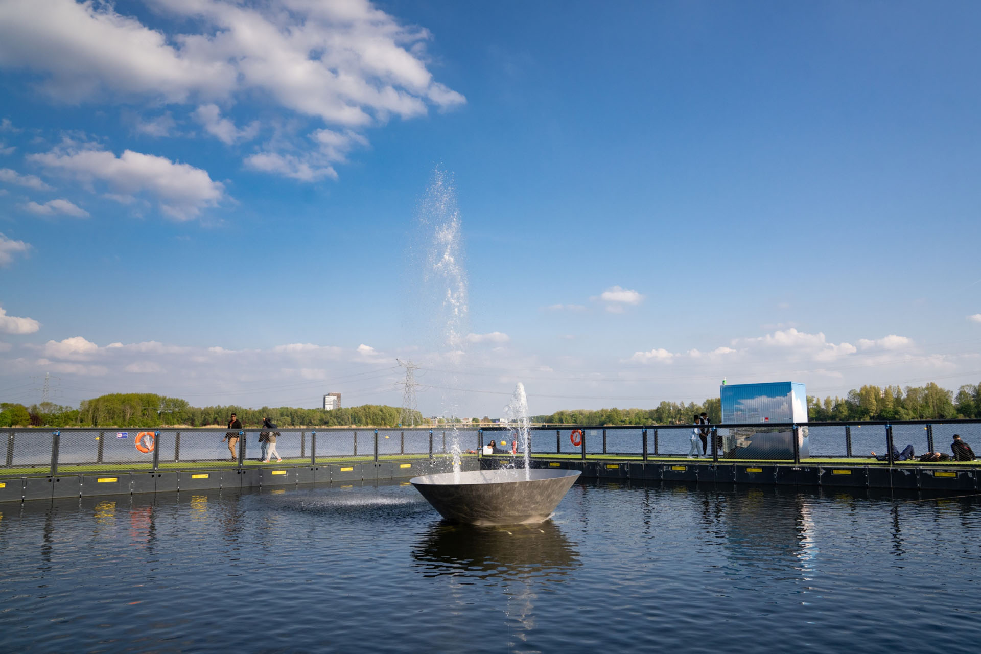 Aan het einde van de pier bevond zich Nieuw Flevo Peil, een waterkunstwerk van Meike Justine Ziegler, ontwikkeld in samenwerking met toekomstig museum M. Dit interactieve werk bestond uit een fontein die water omhoogstuwde op het ritme van de hartslag van Almere-bewoners, gebaseerd op de vraag: “Waarvan gaat jouw hart sneller kloppen?”