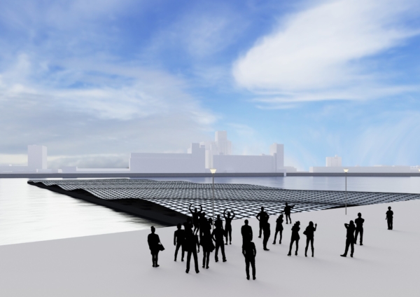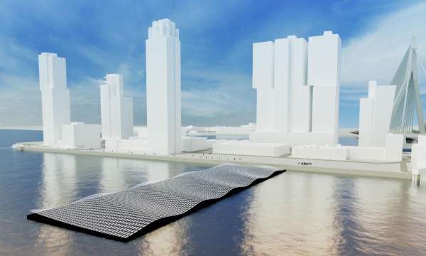 Ripples of Change is een drijvend kunstwerk van zonnepanelen in de vorm van een concentrische golf, ontworpen voor de Rijnhaven in Rotterdam. Het project, een initiatief van Mothership, laat zien hoe duurzaamheid niet alleen functioneel maar ook poëtisch en zichtbaar kan zijn. De installatie bestaat uit zonnepanelen op drijflichamen van gerecycled plastic, die samen een visuele metafoor vormen: als een steen die rimpelingen veroorzaakt in het water — zo wil dit werk een beweging in gang zetten richting een duurzame toekomst.