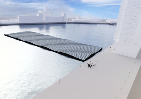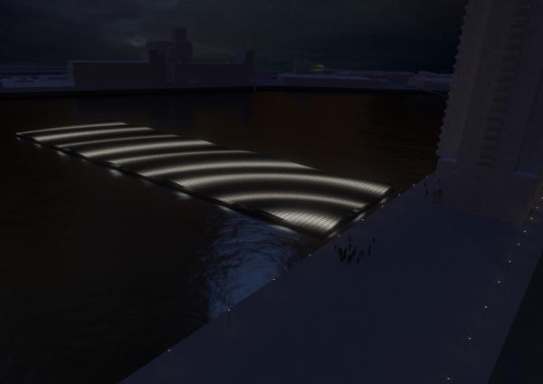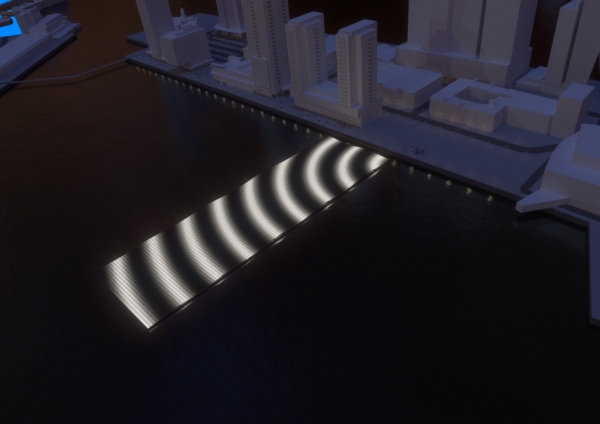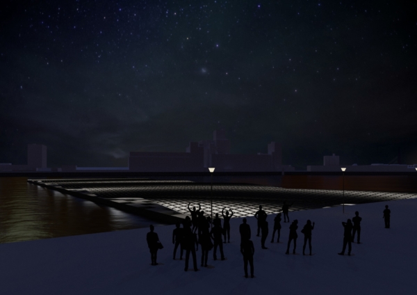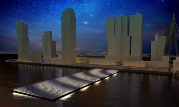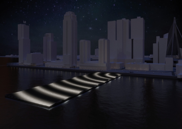 In de avonduren verandert het zonneveld in een lichtinstallatie: de panelen gloeien zacht van onderaf, waardoor een sereen, golvend schouwspel ontstaat dat zichtbaar is vanaf de kades. Het werk sluit aan bij andere iconische drijvende projecten in de Rijnhaven, zoals het Drijvend Paviljoen en het Dobberend Bos, en versterkt Rotterdam als etalage van duurzame innovatie.