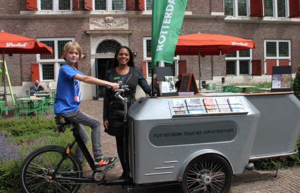 De Rotterdam Information Bike is een mobiel informatiepunt in de vorm van een opvallende bakfiets, speciaal ontworpen om toeristen en bewoners op een laagdrempelige manier wegwijs te maken in de stad. In plaats van te wachten tot bezoekers naar een VVV kwamen, bracht deze fiets de informatie juist naar hen toe – direct op straat, op pleinen, bij evenementen en hotspots. Zo werd de stad actief gedeeld met wie haar wilde ontdekken.