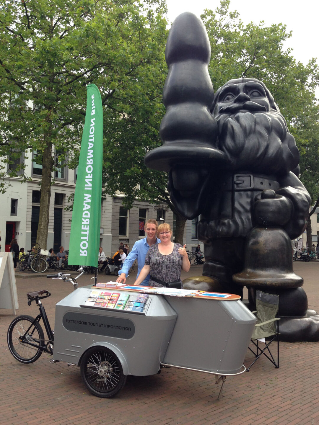 De Rotterdam Information Bike is een mobiel informatiepunt in de vorm van een opvallende bakfiets, speciaal ontworpen om toeristen en bewoners op een laagdrempelige manier wegwijs te maken in de stad. In plaats van te wachten tot bezoekers naar een VVV kwamen, bracht deze fiets de informatie juist naar hen toe – direct op straat, op pleinen, bij evenementen en hotspots. Zo werd de stad actief gedeeld met wie haar wilde ontdekken.