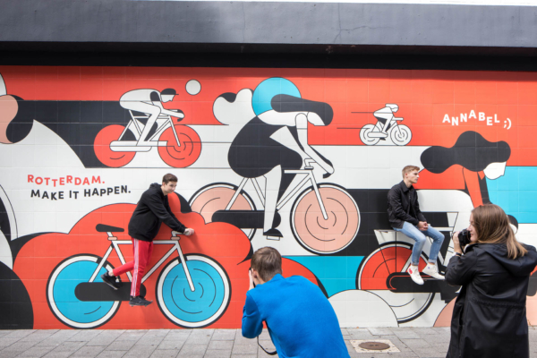 Het interactieve karakter van de muurschildering zit in de fysieke toevoegingen aan de openbare ruimte: voor het kunstwerk zijn opstapjes en zitjes geplaatst, zodat voorbijgangers letterlijk onderdeel kunnen worden van het beeld. Bezoekers kunnen poseren in het ontwerp en zo hun eigen moment vastleggen, waarmee de verbinding tussen kunst en publiek tastbaar wordt.