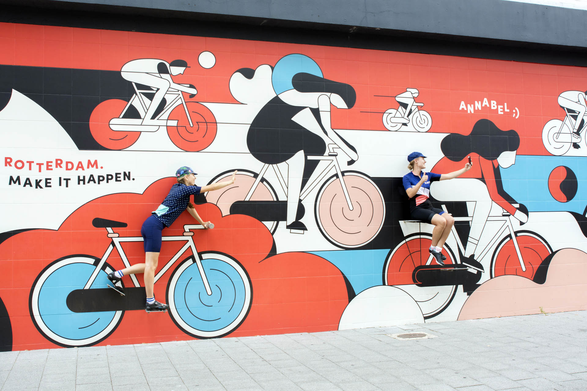 Het interactieve karakter van de muurschildering zit in de fysieke toevoegingen aan de openbare ruimte: voor het kunstwerk zijn opstapjes en zitjes geplaatst, zodat voorbijgangers letterlijk onderdeel kunnen worden van het beeld. Bezoekers kunnen poseren in het ontwerp en zo hun eigen moment vastleggen, waarmee de verbinding tussen kunst en publiek tastbaar wordt.