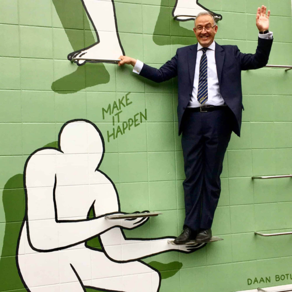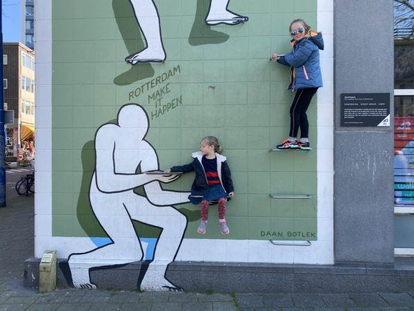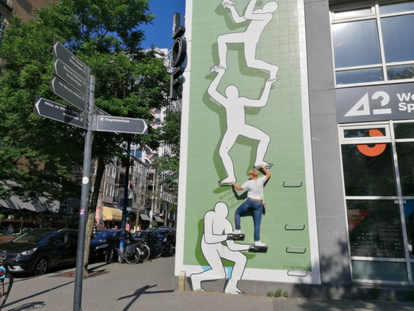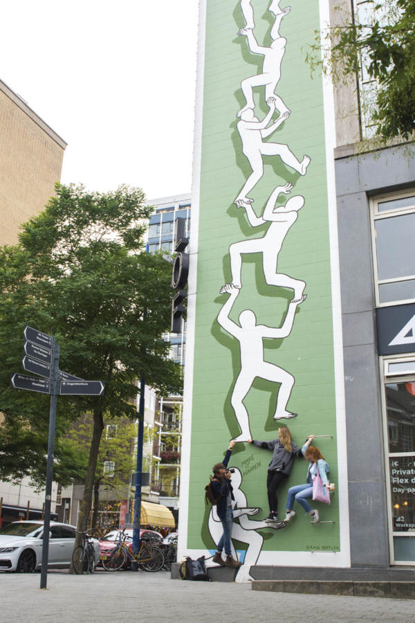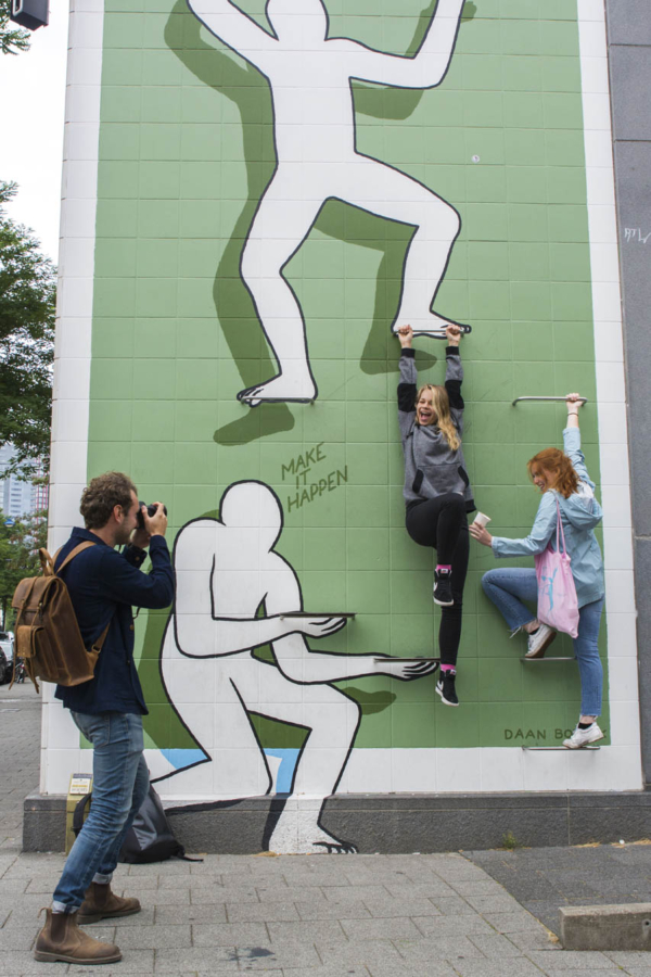 Als tweede kunstenaar in de Rotterdamse streetartserie Make It Happen bracht Daan Botlek in 2017 een indrukwekkend kunstwerk aan op de zijgevel van 42workspace aan de Schiedamse Vest. Met zijn herkenbare, surrealistische stijl creëerde hij een metershoge muurschildering waarin mensfiguren in beweging lijken te zijn — klimmend, vallend of zich uitstrekkend over de gevel. De schildering meet maar liefst 3,30 meter breed en 26 meter hoog.