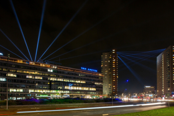 Verspreid over Rotterdam werden pleinen, winkelstraten en markante gebouwen sfeervol verlicht, gebaseerd op hun eigen identiteit en geschiedenis. Zonder programma of evenementen, maar met licht als krachtig symbool van samenhang. Wat begon als steun voor horeca en retail in coronatijd, groeide uit tot een stadsbreed project met blijvende impact – gerealiseerd door Mothership, samen met heel Rotterdam.
